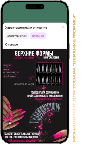 Rich-контент является ключевым, поскольку предоставляет подробную информацию о товаре, отвечает на возможные вопросы и позволяет получить аналогичный опыт оффлайн-покупки. В онлайн-магазинах предоставляет полную информацию о продуктах